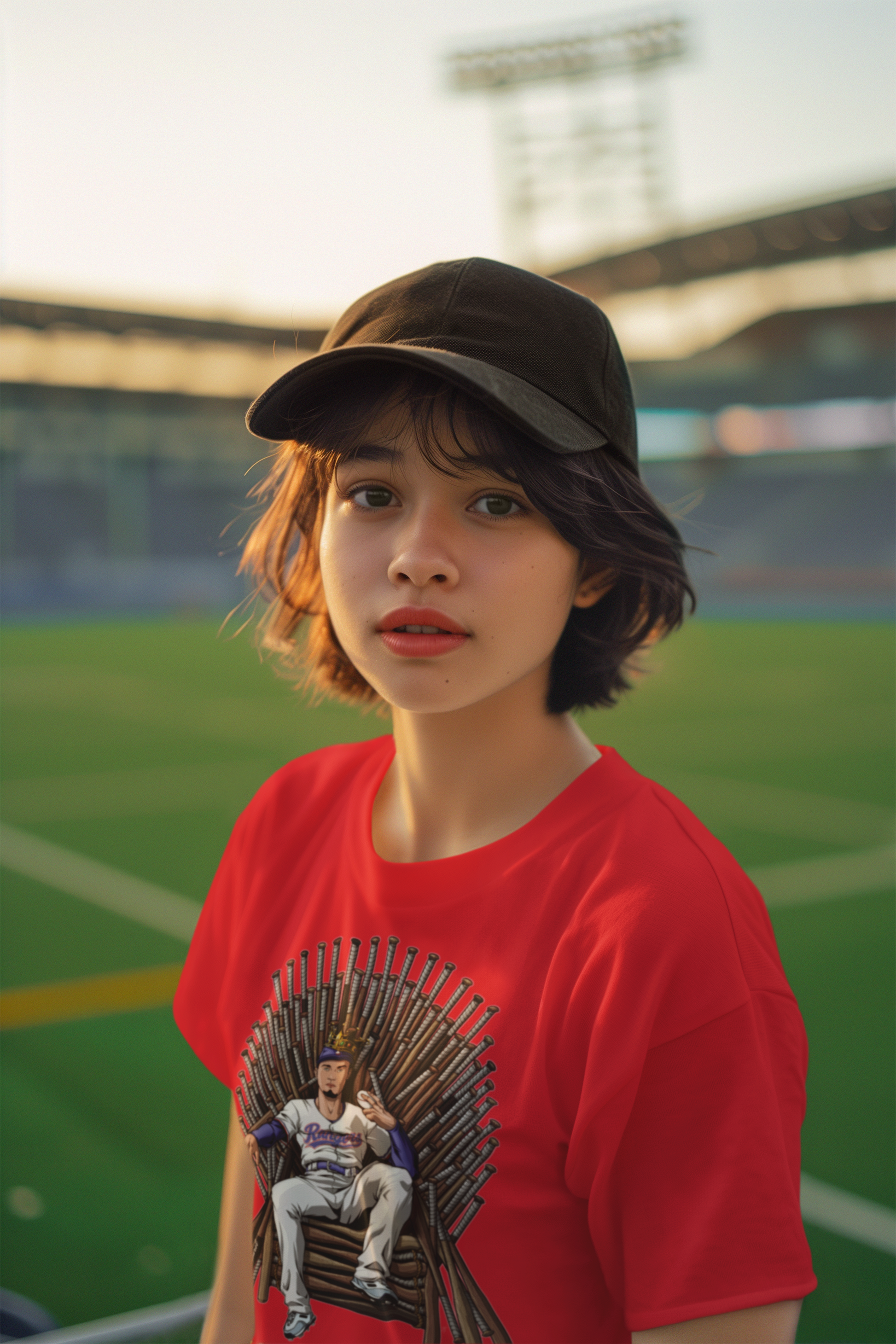 This isn't just any throne - it's a symbol of dominance, crafted from the very tools of the game he conquers. With each swing of his bat, Corey solidifies his place as a legend in the kingdom of baseball.