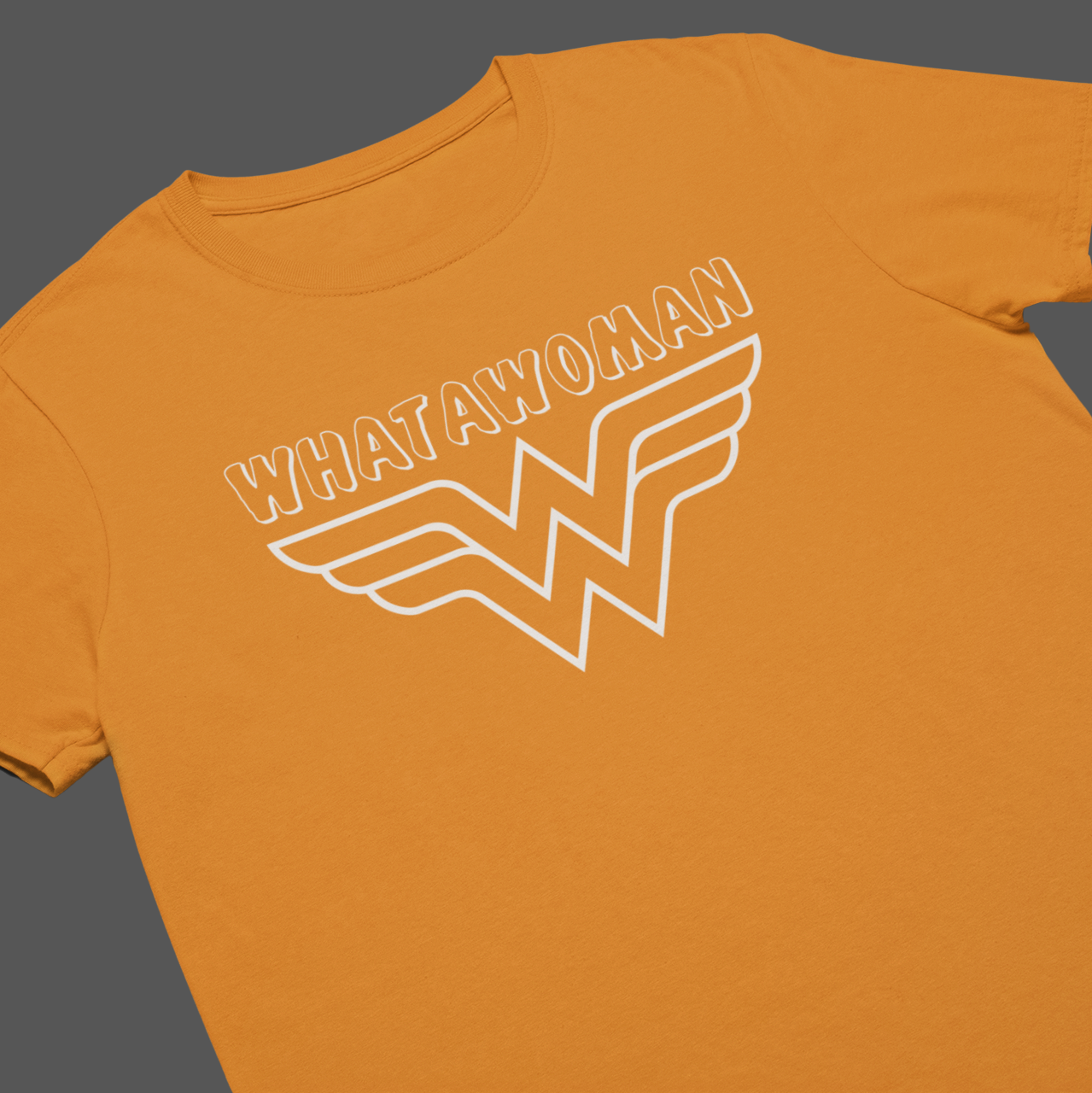 With this shirt, you'll be able to show your love for two iconic things in one fell swoop. Not to mention, you'll be sure to get a few laughs and maybe even a few compliments on your awesome sense of humor. So, whether you're grabbing a burger or saving the world, be sure to do it in style with our "WHATAWOMAN" t-shirt!