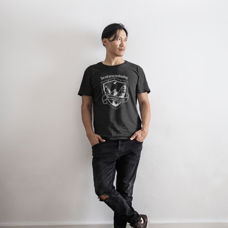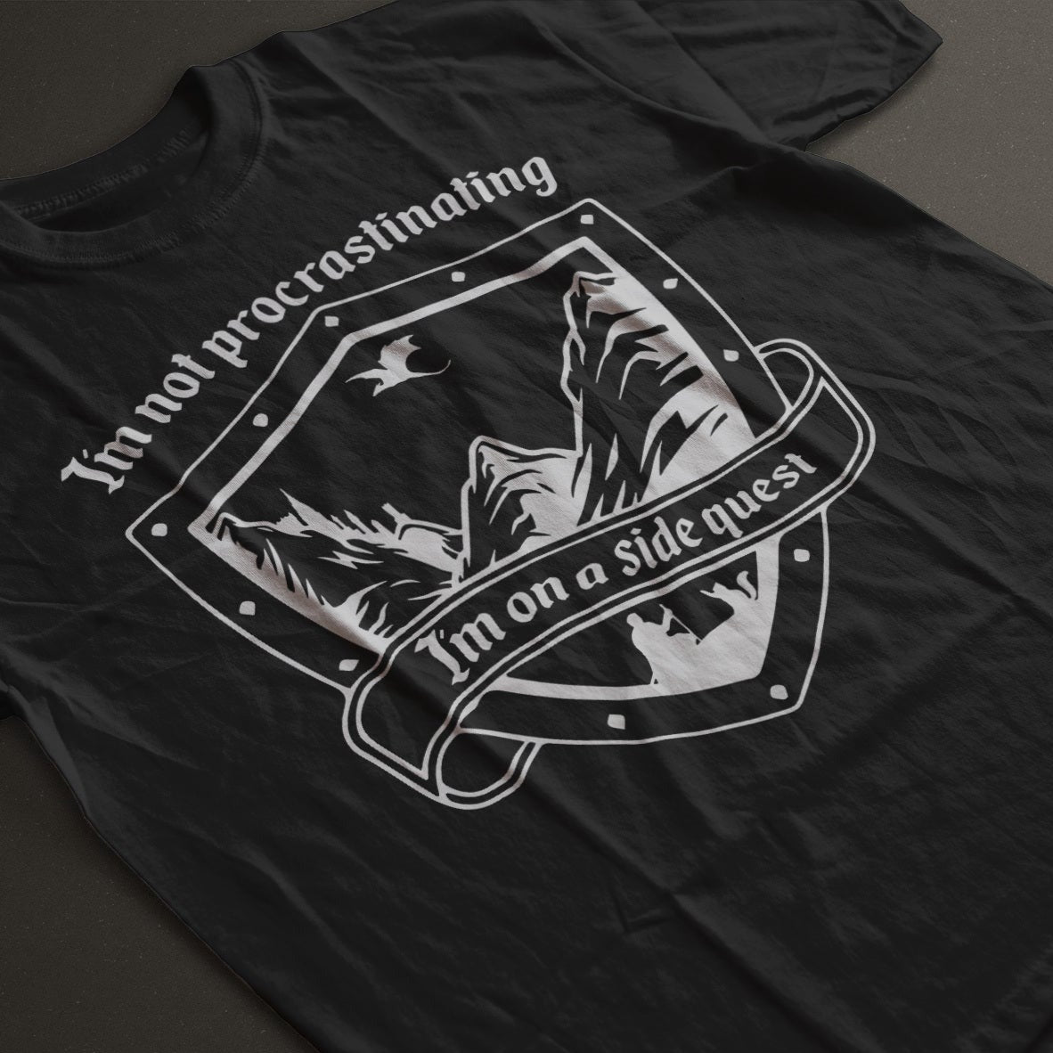 Introducing our latest t-shirt design for all you gamers out there - the "I'm not procrastinating, I'm on a side quest" t-shirt! This shirt is perfect for anyone who loves to play RPGs and knows that sometimes the side quests are just as important as the main quest.